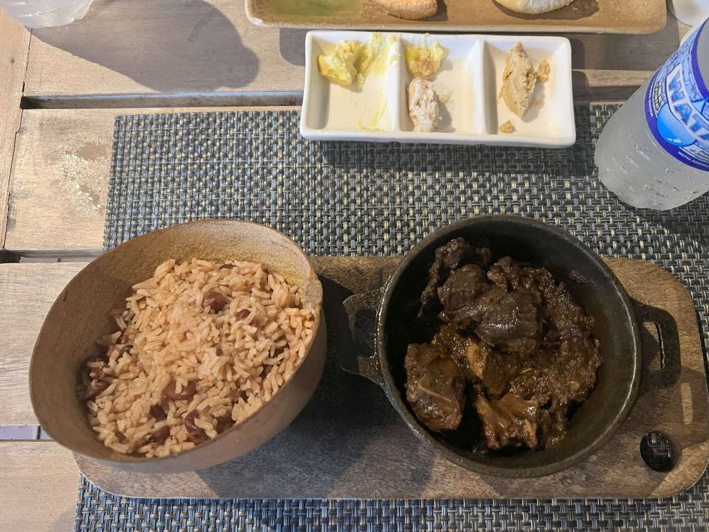 Second dinner was at the Jerk Shack. At Sandals Dunn’s River, the super casual Jerk Shack is open for dinner by reservation only, and serves an entirely different menu. In fact, jerk isn’t even on the dinner menu. HA! Served very humbly in a coconut shell and cast iron pan, we shared curried goat, braised oxtail, and rice ‘n peas. This is undoubtedly the best Jamaican meal we’ve ever had, and we’ve eaten plenty over the years! We got to speak with the extremely young and talented chef who shared he was raised by his grandmother and these are her recipes. How special!