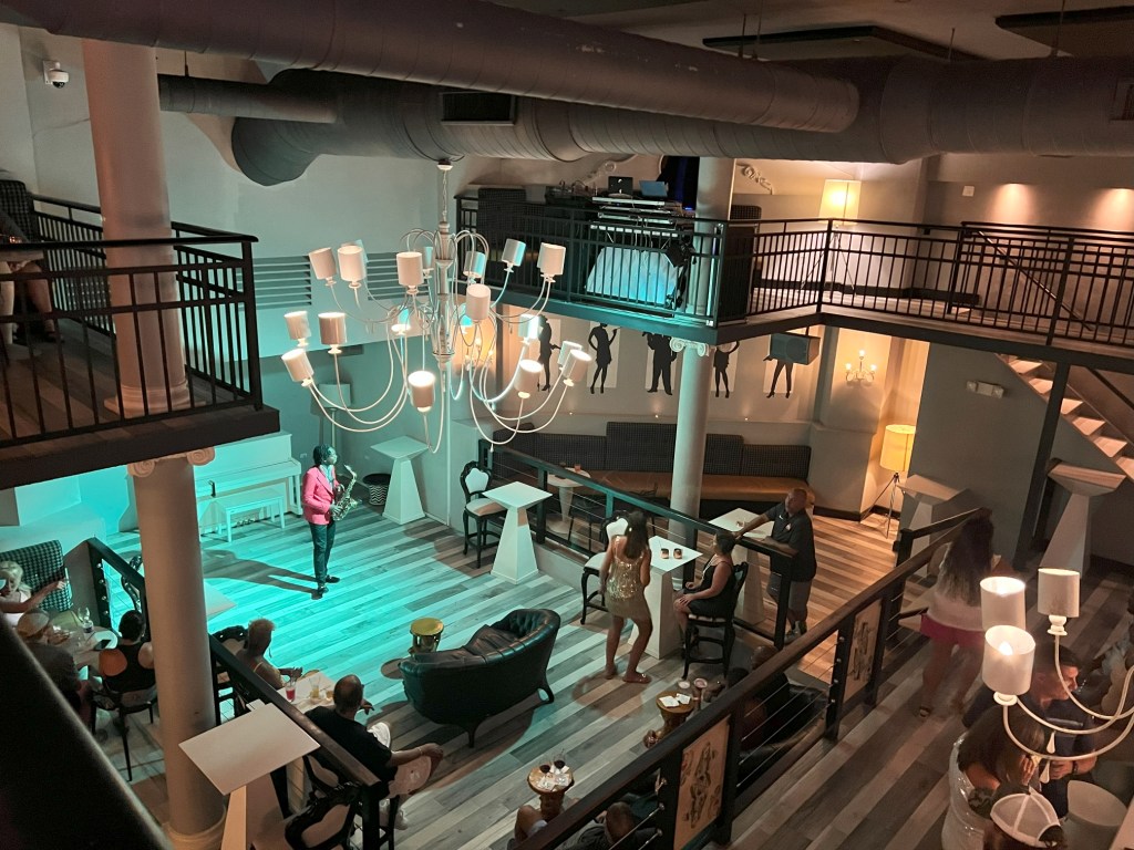 Another unique item is the bi-level, password-protected speakeasy named The Rabbit Hole. While hidden in plain sight, it’s not easy to find. In truth, you don’t have to work too hard to secure a password, but being asked for it to gain entry is fun nevertheless. 😉 The night we visited, there was a sax player. The lineup also includes a DJ and other live entertainment. Super cool!