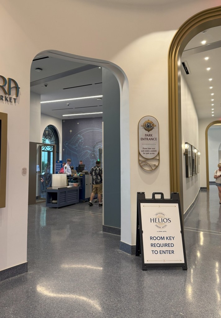Because of its prime location, Helios has a dedicated entrance to Epic Universe just off the lobby. This is exclusively for hotel guests with valid theme park admission. You are quite literally in the heart of the magic.