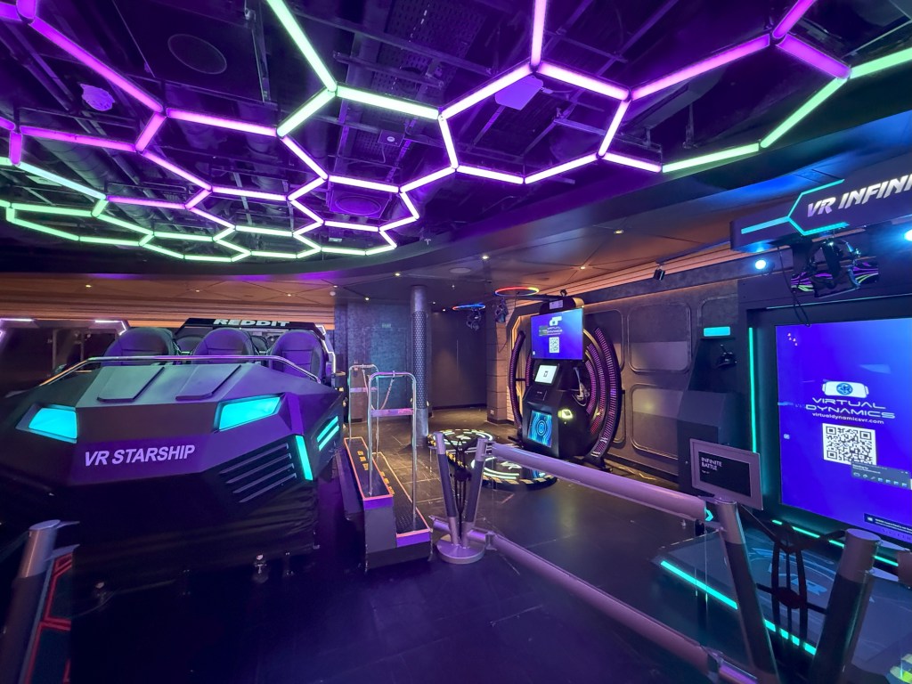Entertainment onboard is abundant and diverse. The Galaxy Pavilion ($), with its immersive VR experiences and simulators, was a hit with the teens. We always grab unlimited passes on day one as they sell out quickly. We also tackled one of the two escape rooms ($) early in the cruise and had a blast. Unfortunately, we waited too long to book the second one, and not even our Concierge could snag us a spot. Lesson learned!