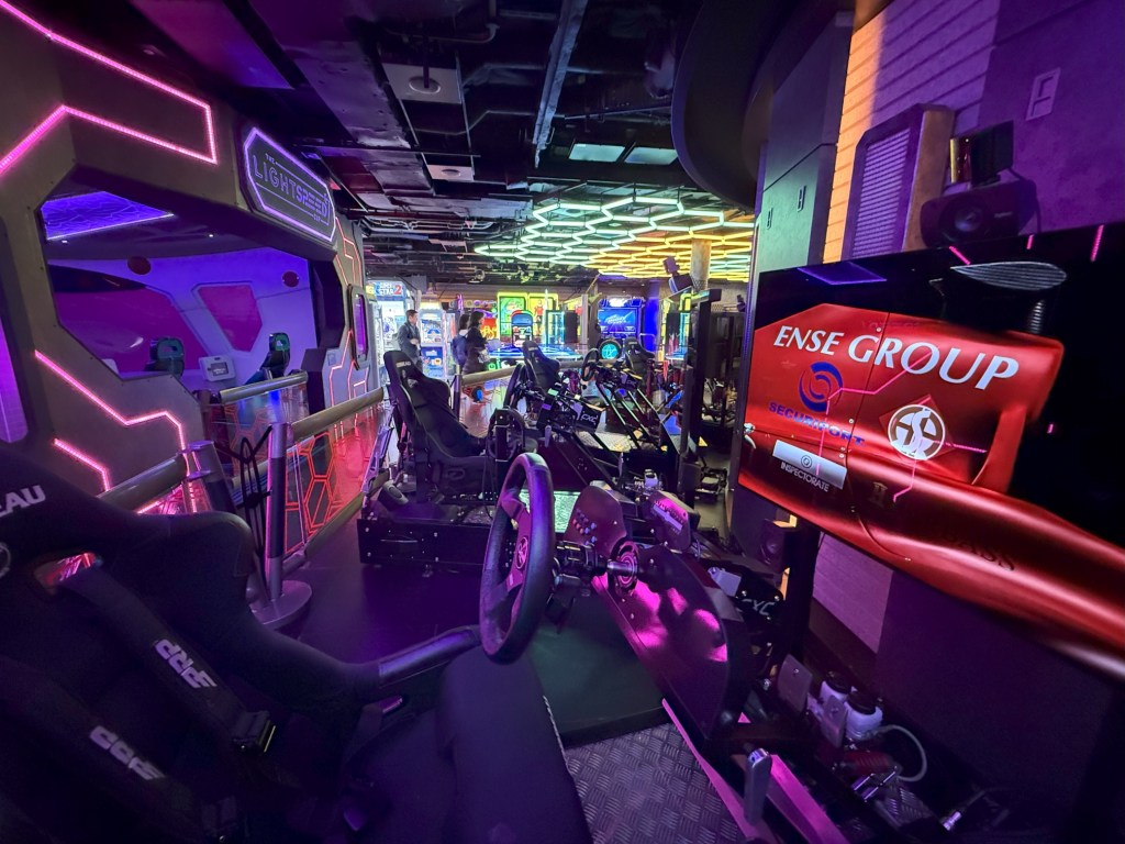 Outdoor fun is weather-dependent, but when the sun shines, the options are endless. The Prima Speedway ($) is a thrilling, tri-level racetrack that’s as fun as it sounds. The Stadium offers complimentary games like shuffleboard, pickleball, and even beer pong. We tried the dueling slides, The Rush, and while we didn’t exactly zoom through them, the laughter was worth it. The Drop, a free-fall slide, looked more intense. We’ll save that for next time.