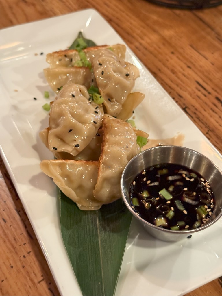 I was pleasantly surprised by our meal. The food was delicious and the portions generous. We shared pot stickers and chicken-fried rice. (We’d been snacking since lunch.)